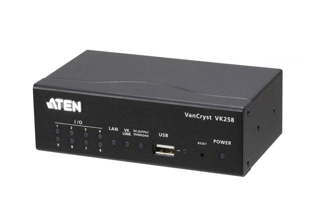A VK258 további nyolc csatornás digitális bemenetet/kimenetet biztosít az ATEN Control System rugalmas bővítéséhez. Ez lehetővé teszi a felhasználók számára, hogy több digitális I/O eszközt, például különféle érzékelőket, PC-ket és motoros eszközöket vezéreljenek olyan környezetben, ahol több eszközt kell központilag vezérelni. Az Ethernet alapú kapcsolat előnyével a termék könnyen csatlakozik az ATEN Controllerhez LAN kapcsolaton keresztül a hálózat különböző helyeiről.