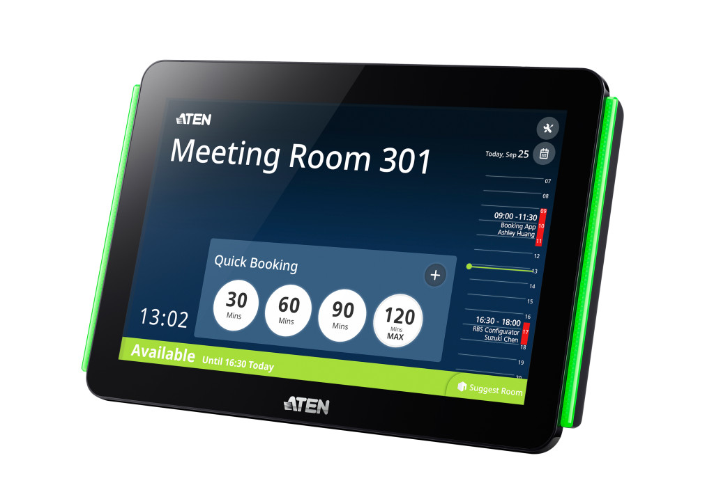 Az ATEN VK430 RBS Panel egy 10,1 hüvelykes érintőképernyős panel, amelyet konferenciatermek kezelésére használnak, és központilag az ATEN RBS Configurator segítségével konfigurálják – az RBS Panels központosított kezelőszoftverével, a naptárszerverekkel, például a Microsoft Office 365 Calendarral való integráció mellett a kényelmes ütemezés érdekében. és a rendelkezésre állás hozzárendelése a rendszerben lévő összes konferenciateremhez. Ez azt jelenti, hogy néhány egyszerű érintéssel a felhatalmazott személyzet lefoglalhatja a konferenciatermet, meghosszabbíthatja vagy felszabadíthatja a teremhasználatot, és ellenőrizheti bármely konferenciaterem foglalási ütemezését közvetlenül a VK430-on.